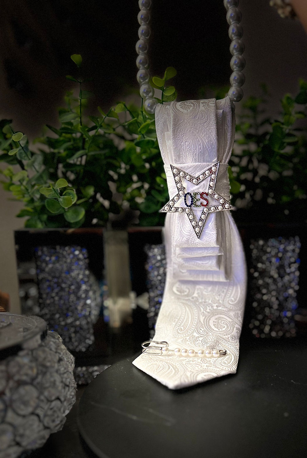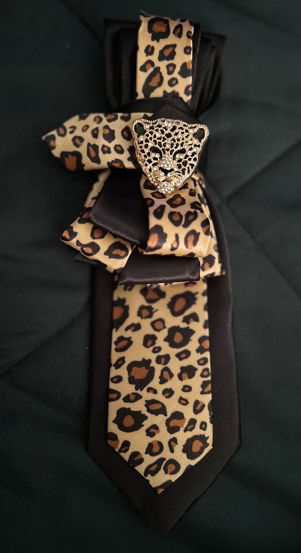 Black/Red Tie Stripes w/Red Elephant Brooch