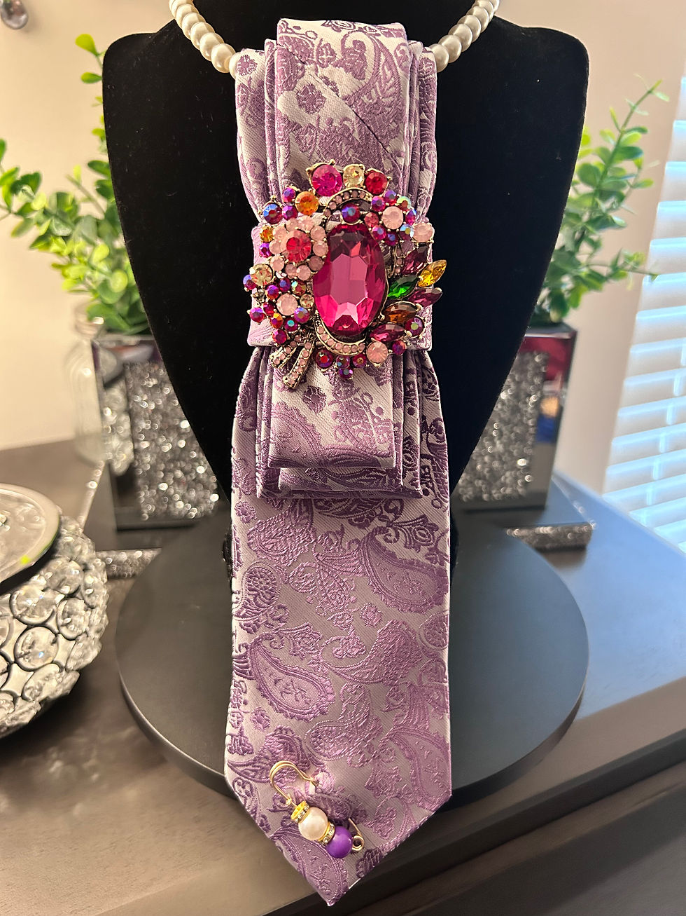Royal Purple Elegance Tie Deep purple satin tie with floral rhinestone statement