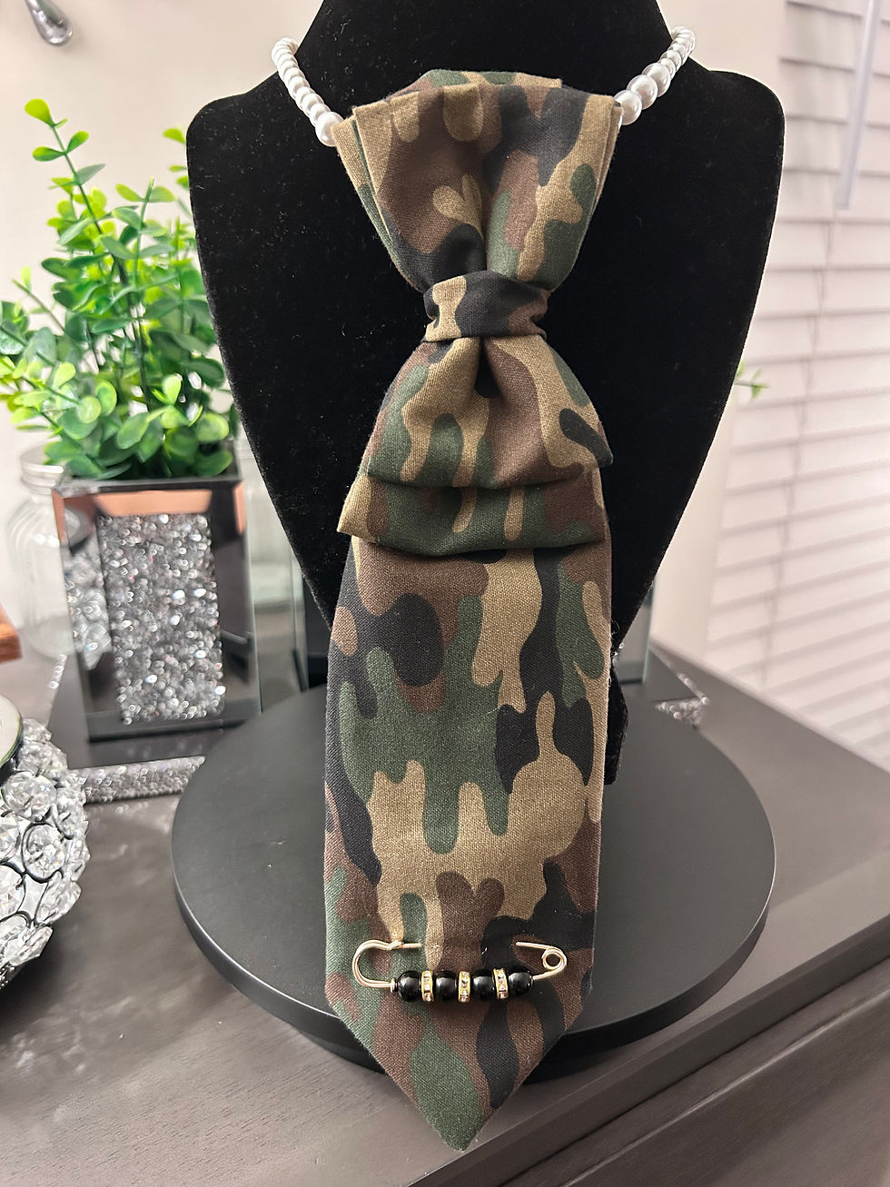 Silver Crystal Glam Tie Soft silver tie adorned with crystals and elegant brooch